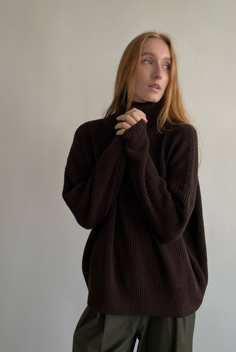 Свитер с горлом актуального свободного фасона oversize из хлопка с акрилом.