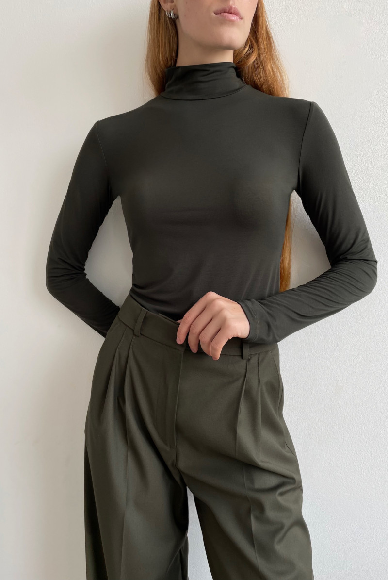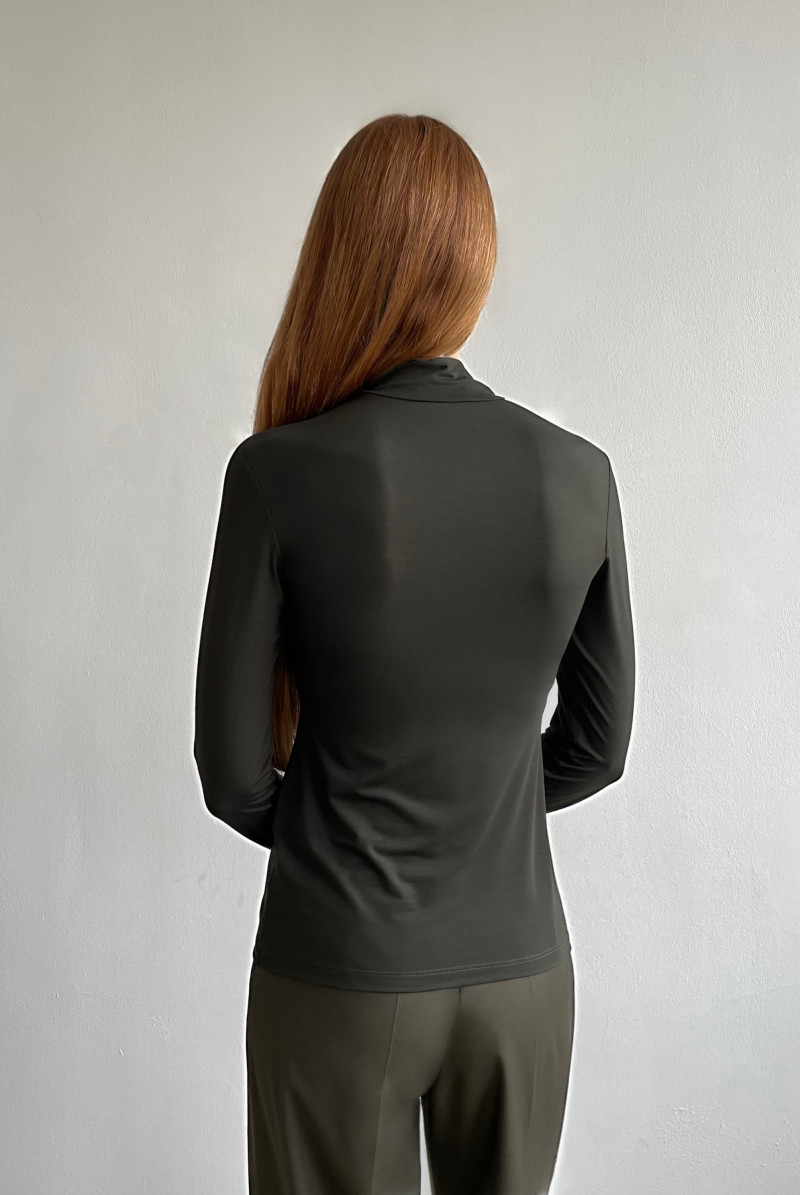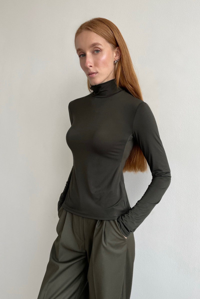 Водолазка из тонкого трикотажа приталенного силуэта. Рукав длинный, воротник стойка.