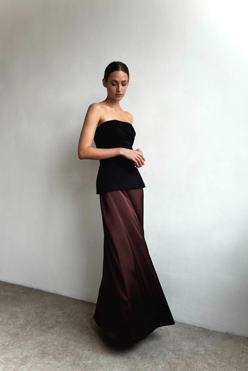 Юбка "макси" А-силуэта, без пояса (на обтачке), застежка на потайную молнию по середине спинки.